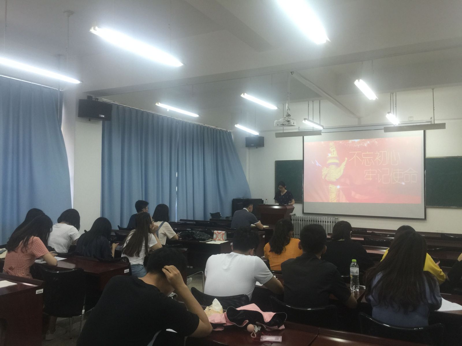 本站讯 为进一步推进“两学一做”学习教育常态化制度化,加强毕业班党员党性教育,6月5日下午,我院本科生党支部于图东环楼304室组织开展“不忘初心、牢记使命”毕业生党员主题党日活动。本次主题党日由支部委员王磊主持,党支部书记孙磊出席活动,2018届全体毕业生党员参加了活动。