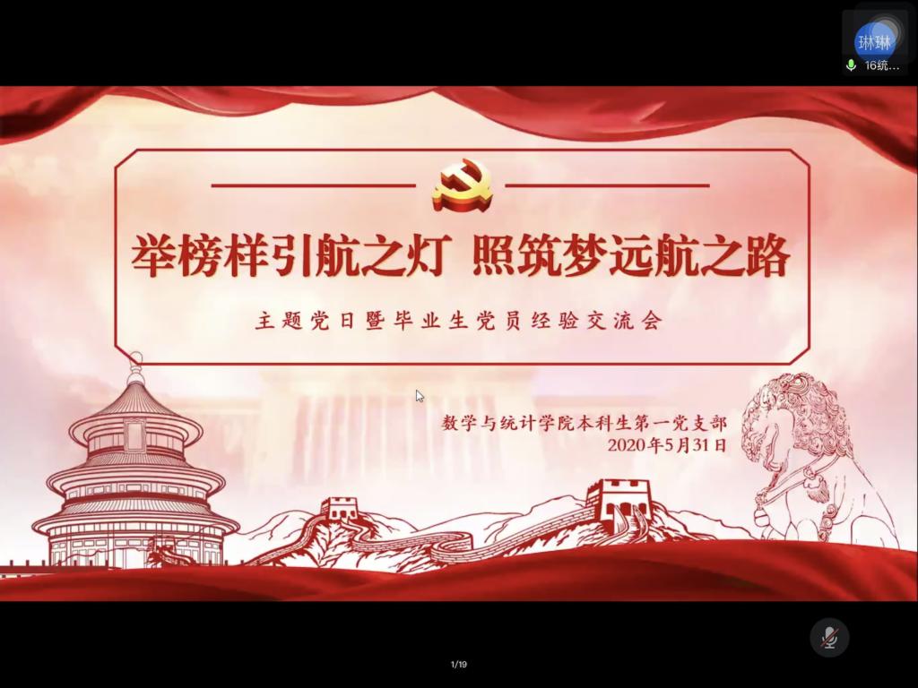 本站讯 为树立党员先锋,传递榜样力量,5月31日上午,我院本科生第一党支部通过腾讯会议开展了“举榜样引航之灯,照筑梦远航之路”主题党日暨毕业生党员经验分享会。学院本科生第一党支部全体党员、部分入党积极分子参加了会议。