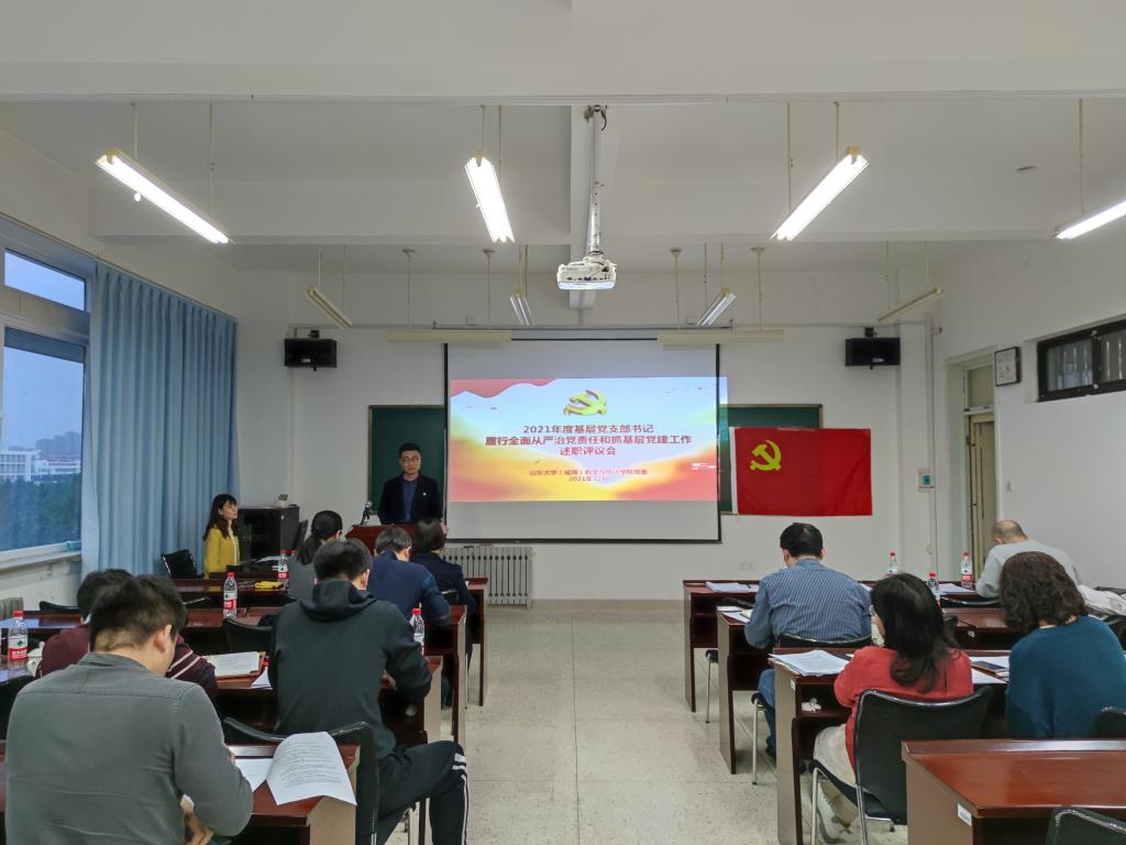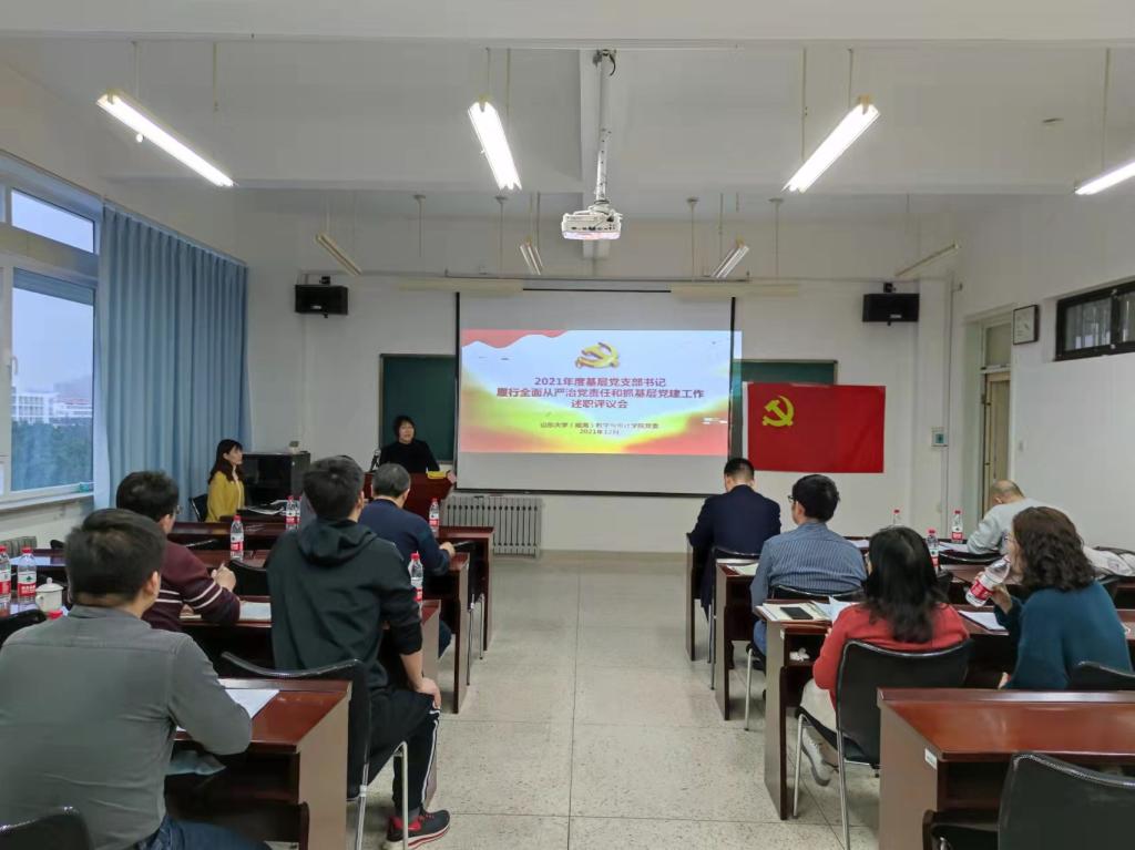 于振涛充分肯定了学院各党支部书记工作中的成绩,结合学院实际情况提出三点要求:一是履行全面从严治党主体责任,持续深化作风建设,发挥基层党组织战斗堡垒作用和党员先锋模范作用。二是坚持不懈抓好理论武装,切实做好意识形态管理工作,推进党史学习教育常态化制度化,进一步落实学院党委意识形态工作责任制实施细则。三是不断提升师生思政工作质量,建设坚强有力的基层党组织,推进师德教育常态化,加强课程思政建设,健全立德树人落实机制,促进党建工作与中心工作深度融合,优化完善党员队伍建设。