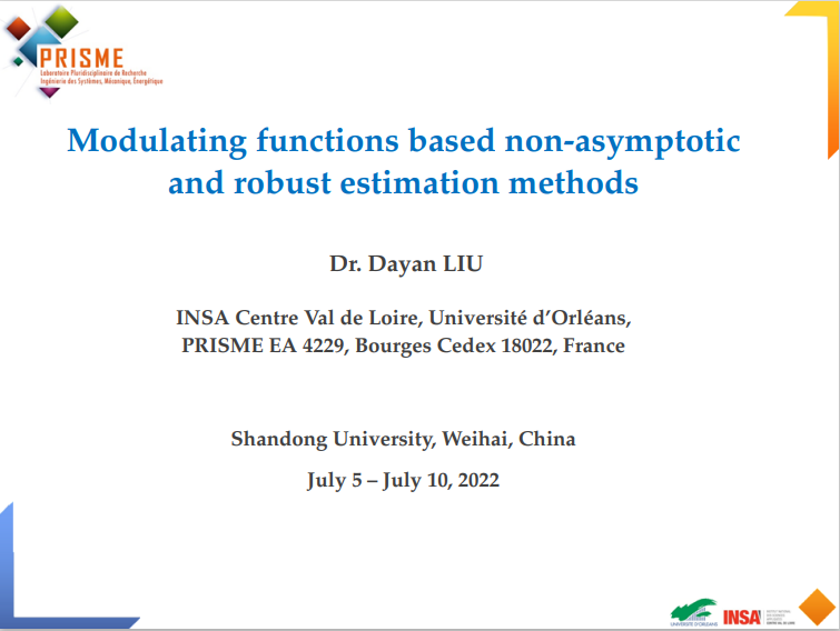 《非渐进代数估计方法及其在微分器设计中的应用》由齐海涛教授作为课程负责人,由来自法国中部卢瓦尔河谷国立应用科学学院的刘大研副教授主讲。本课程主要介绍两种非渐进代数估计方法及其在微分器设计中的应用,并介绍学科前沿分数阶微积分相关知识。通过本课程的学习,旨在培养学生的国际学术视野和科研能力,提升学生运用所学知识解决相关领域实际问题的能力。