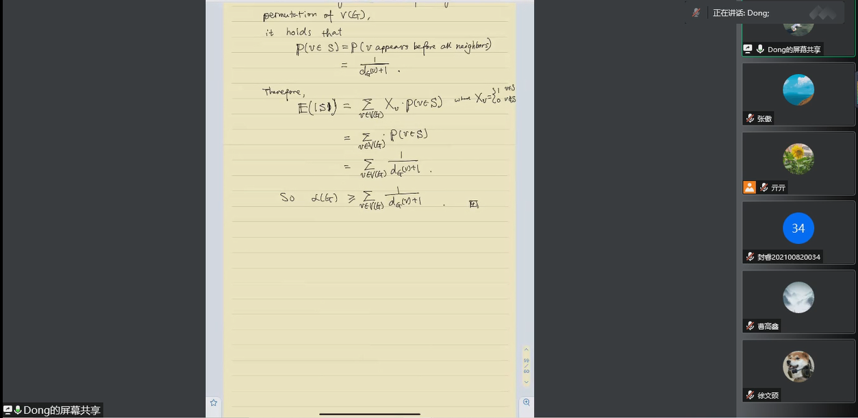 《离散数学》由亓兴勤教授作为课程负责人,由来自美国中田纳西州立大学的叶东教授主讲。叶东教授全程英文讲授了离散数学核心内容及前沿课题,从图谱理论到正则定理,再到他们的具体应用。叶东教授语言流利、发音标准,讲课思路清晰、深入浅出、十分透彻。通过学习离散数学课程,同学们均表示受益匪浅,不仅掌握了离散数学的核心内容,更激发了对图理论及其应用的兴趣,在心中埋下了科研的种子。