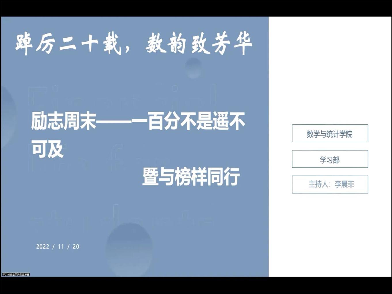 本站讯 11月20日晚,KY开元集团官网于腾讯会议举办“励志周末”——“与榜样同行”专业学习经验分享会。活动邀请到了四位学习成绩优秀学子作为学习榜样,为同学们提供专业课学习思路与成功经验。100余名学生参加本次活动。