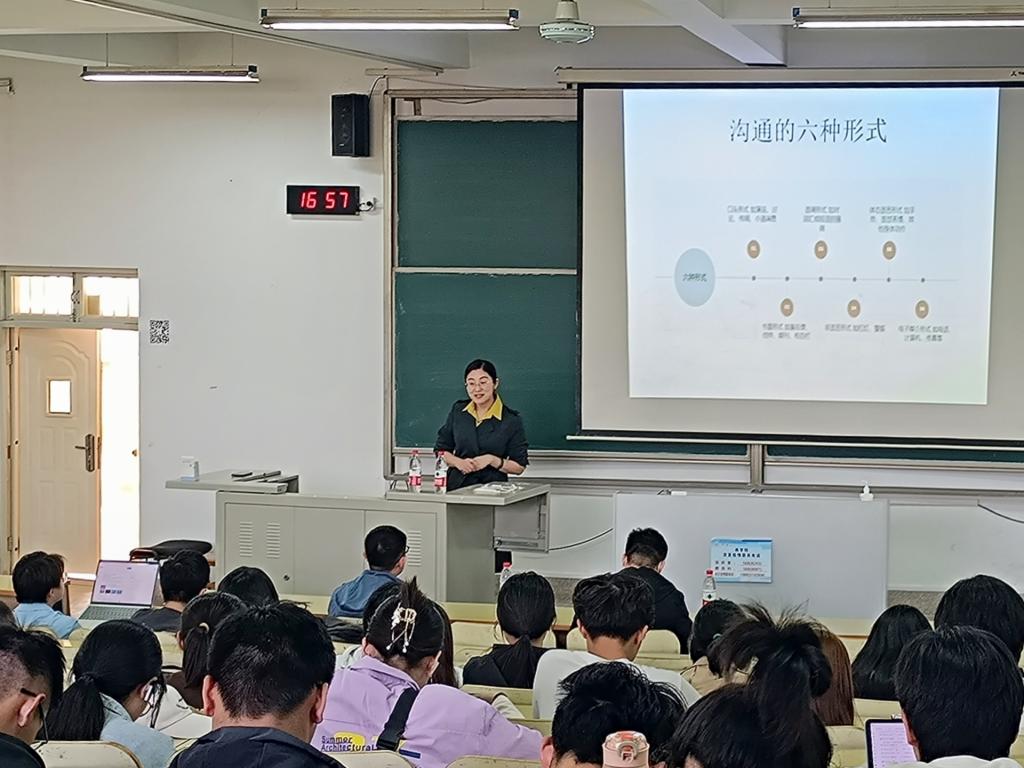 最后,王鹏飞结合萨提亚沟通的五个层次,带领同学们学习了如何提升沟通的效果及沟通遇到问题时的应对策略。王鹏飞鼓励大家要以乐观的心态去看待问题,以积极的行动去解决问题,希望同学们能够边学、边想、边做,不忘初心,真正能成为老师、学生间沟通的桥梁和纽带,提升为同学服务的本领和水平。