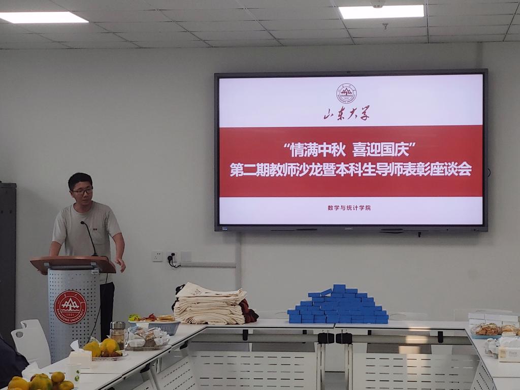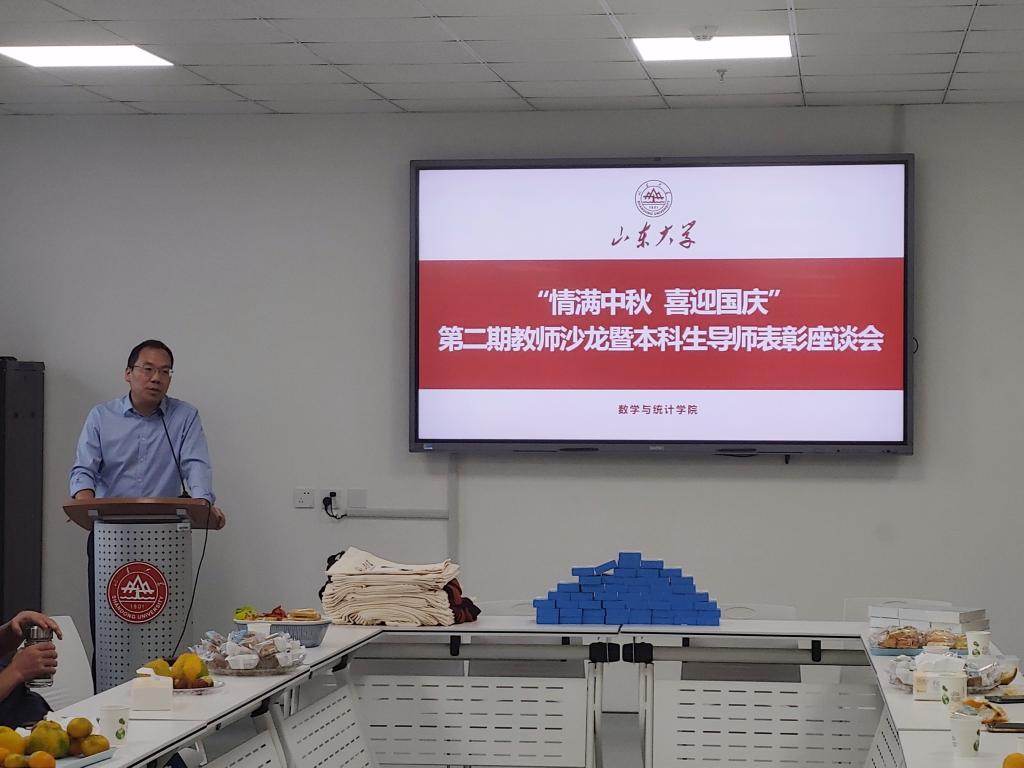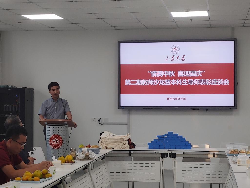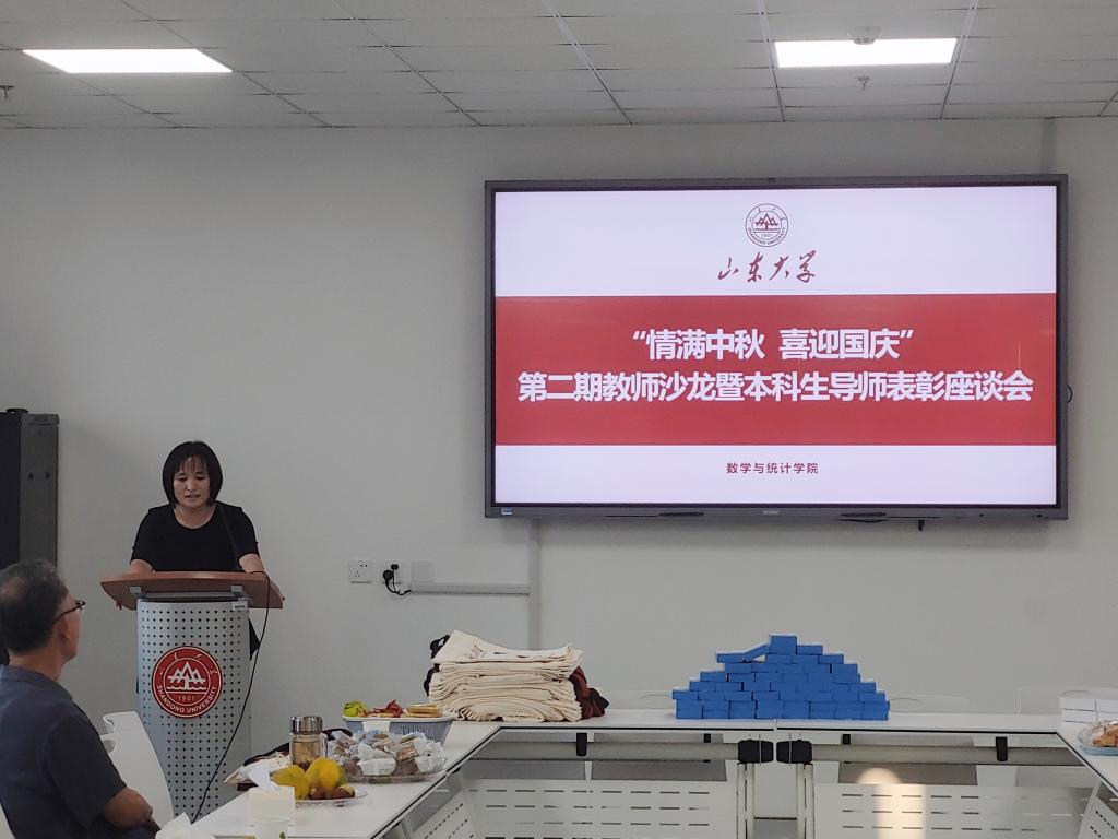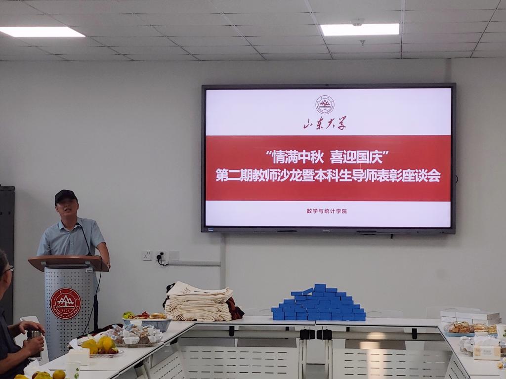 本站讯 中秋、国庆“双节”来临之际,为全面落实立德树人根本任务,提升学院本科生导师工作实效,9月28日下午,KY开元集团官网于北衡楼1420室举办“情满中秋 喜迎国庆”第二期教师沙龙暨优秀本科生导师表彰座谈会。学院党委书记于振涛、常务副院长齐海涛出席活动并致辞,学院党委副书记王鹏飞主持,各教学系本科生导师、工会小组成员参加活动。