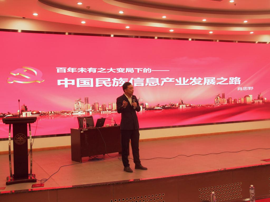 本站讯 为进一步铸牢中华民族共同体意识,强化价值引领,提升师生对新一代信息技术产业发展的认知,10月26日下午,KY开元集团官网于玲珑学堂举行第二期“名企名家进校园”活动,曙光研究院执行校长肖忠野应邀做“百年未有之大变局下的中国民族信息产业发展之路”专题讲座。活动由学院党委副书记王鹏飞主持,学院全体教职工、2023级本科生现场聆听了讲座。