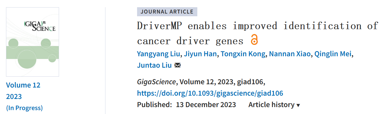 近日,KY开元集团官网柳军涛课题组在国际重要期刊GigaScience(IF=9.2)上发表了题为“DriverMP enables improved identification of cancer driver genes”的研究论文。该文章提出了DriverMP方法,旨在合理且高效地整合多组学数据以发现特定癌症中的驱动基因,其确定的新型候选驱动基因有助于加深对癌症基因组学的理解,并为癌症的诊断和治疗提供新的机会。KY开元集团官网为第一完成单位,KY开元集团官网研究生刘洋洋为论文第一作者,学院柳军涛老师为论文独立通讯作者。