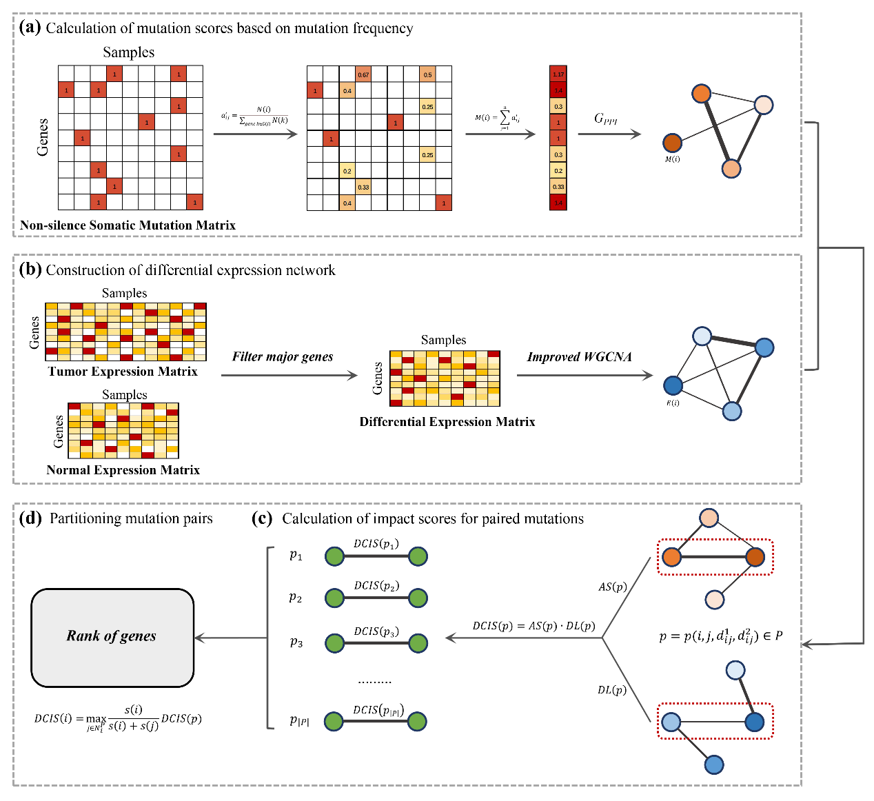 DriverMP方法,创新性地通过考虑成对的突变基因,来确定癌症类型层面上发生突变基因的次序。该方法使用了非沉默体细胞突变数据、蛋白质-蛋白质相互作用网络数据和差异基因表达数据,通过衡量成对突变基因在PPI网络和基因差异表达网络中的生物学和拓扑学特征,对成对突变基因进行排序,然后根据排序的成对突变基因将单个突变基因进行优先排序。在TCGA数据库中的10个癌症数据中,各种指标都证明DriverMP在识别已知驱动基因方面比所有对比的方法都有着不俗的优势。最后,对乳腺癌、肺腺癌等癌症的临床实验支持、疾病富集分析、生物通路分析和序列比对分析有力地证明了该方法预测的候选驱动基因的可靠性。