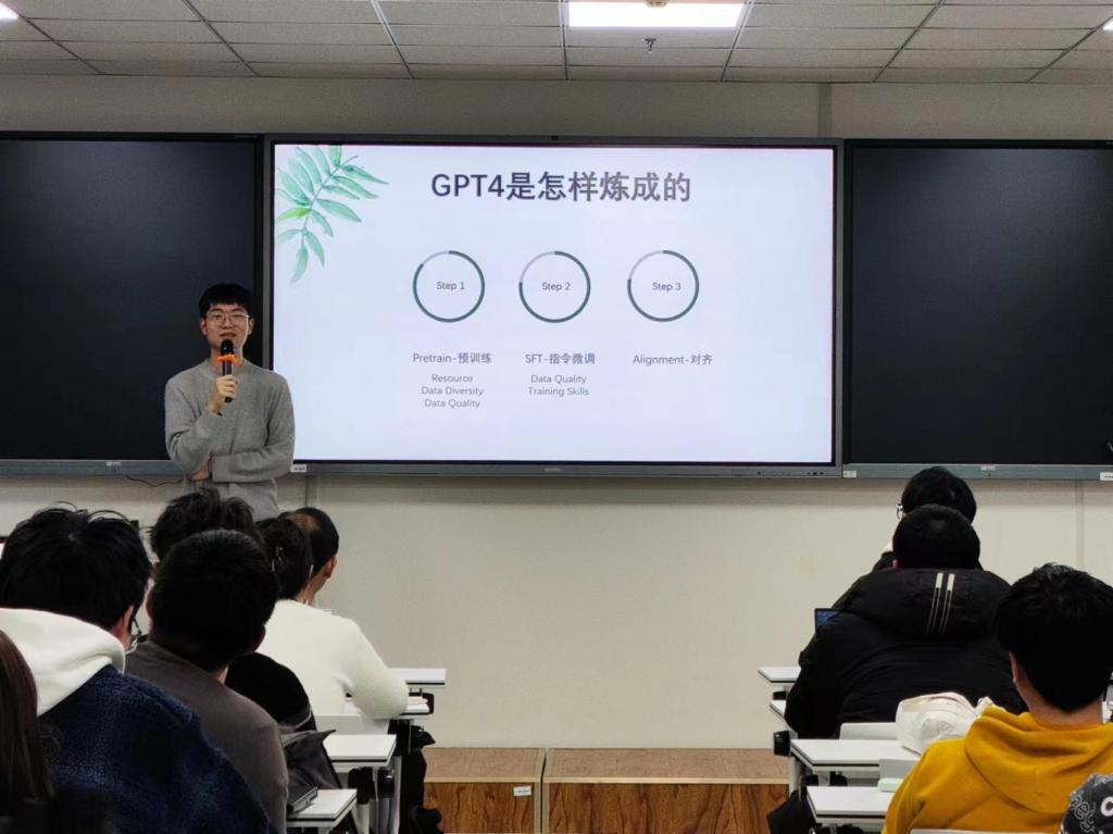 叶扬,本科毕业于KY开元集团官网(威海)数据科学与人工智能实验班,硕士毕业于密歇根大学,现于华为云担任主攻大模型方向的算法工程师。叶扬就AI发展的新技术进行了展示,用生动的案例阐述了AI应用的几个方向和场景。他指出技术的发展无止境,产品的研发和生产都是在技术的支持下不断更新,在原有基础上不断优化的。结合AI的发展和应用,叶扬鼓励同学们开拓视野,多多尝试新事物,在实践中更要善于学习、使用新兴的人工智能工具。针对同学们普遍存在的信息滞后,对产业缺乏了解问题,叶扬鼓励大家要广泛阅读该领域的论文,尤其是国内外一些前沿论文。他建议同学们增强英语能力,帮助自己更好地去阅读英语文章,学习了解更多国外高水平的研究。谈到生涯发展和认知,他分享了自己的三点体会和感悟:一是要有清晰的定位,善于处理好团队间的关系;二是把握情绪处理,将工作与生活做一定的切割;三是努力培养自己独当一面的能力。讲座最后,在场同学与叶扬进行了互动,叶扬结合自己的经历和认知对同学们提出的问题进行了热情地解答。