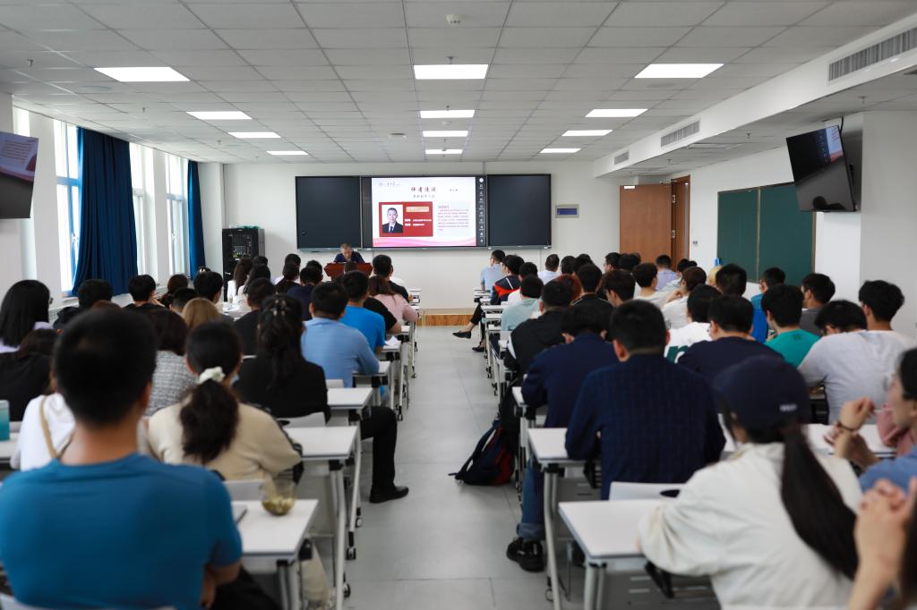 本站讯 5月23日下午,KY开元集团官网第九期“师者漫谈”活动在北衡楼1420举办。学院退休教师郭新伟以“我的数学人生”为主题,进行了专题讲座。学院领导班子成员、教师代表、2024届毕业生代表100余人现场聆听了讲座,讲座由数学与应用数学系主任陈明涛主持。