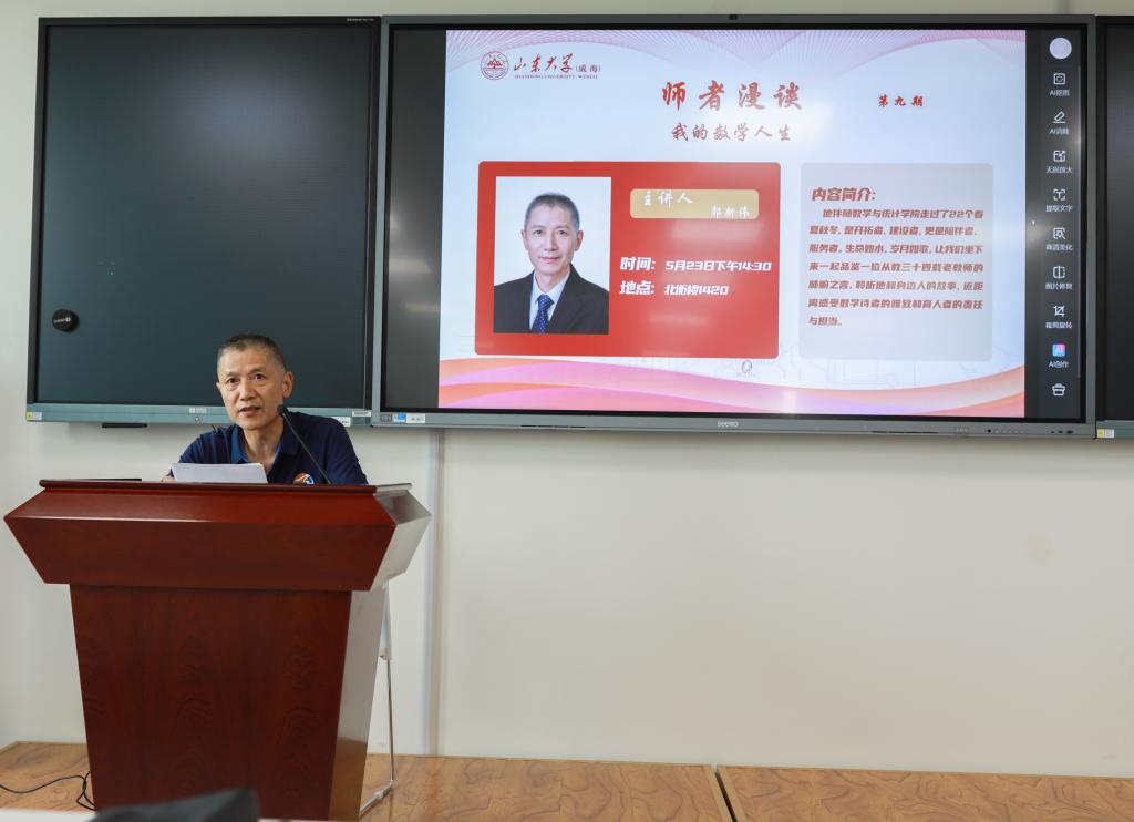 郭新伟教授伴随KY开元集团官网走过了22个春夏秋冬,是开拓者、建设者,更是陪伴者、服务者。讲座中,他结合个人四十余载的求学和从教生涯,从时间的脉络、环境的优化、身边人的故事三个维度分享了所历、所思、所悟。他用生动的讲述回顾了威海校区办学40年的蓬勃发展,追忆了数学系从成立到改系建院的奋斗历程,分享了一届届数学人笃定前行的历历往事。他说,“传承”是山威数学人的“关键词”。自校区数学系创建以来,山威数学人聚力坚守着数学人的初心,勠力秉承着数学人的本性,接力承担着数学人的崇高使命。他勉励与会的青年教师和学生,要继续传承这种数学人的精神,勇于探索,开拓进取,找到人生的最优坐标,在更大的宇宙空间中释放能力、发光发热。