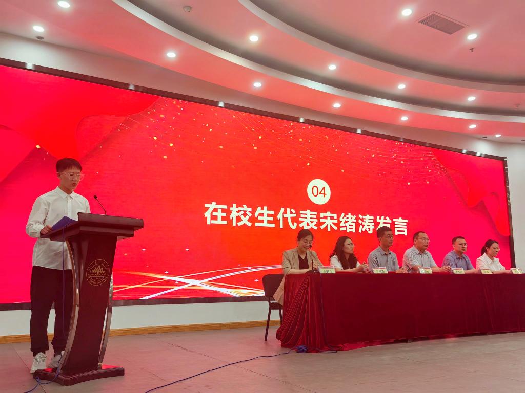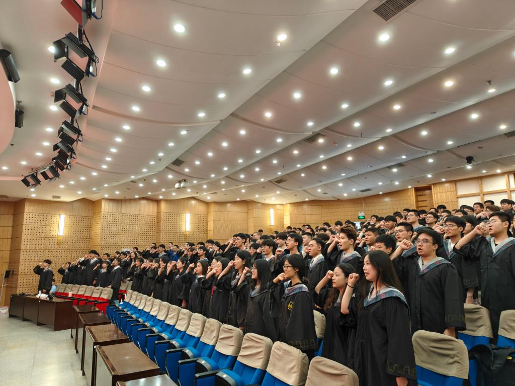 在校生代表宋绪涛对学长学姐在校期间的悉心帮助表达了感谢,表示将会以学长学姐为榜样,努力学习,踏实进取,弘扬和传承山大精神,与毕业生一起肩负起为母校争光、为国家效力的重任。毕业生代表侯潇涵分享了大学四年的成长与收获,表达了对学院以及老师、同窗的感激之情和对母校的依依惜别之情,从“学无止境,气有浩然”的校训精神,回顾了在母校四年来的成长与收获,并代表毕业生对未来提出展望。发言完毕后,她带领全体毕业生进行庄严宣誓。