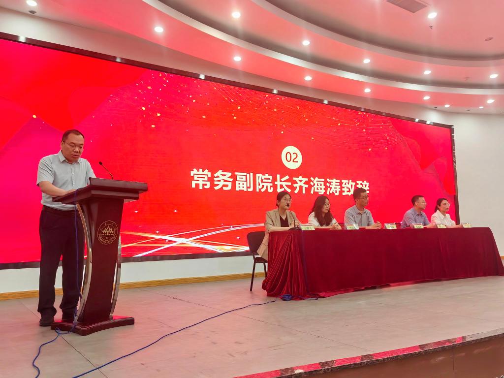 在庄严嘹亮的国歌声中,毕业典礼拉开序幕。常务副院长齐海涛致辞,他代表学院全体教职工对2024届毕业生顺利完成学业表示祝贺,肯定了同学们在过去四年取得的成绩与荣誉,并对毕业生提出三点希望:一是希望大家正视变化,锐意创新,苦练本领,做积极应变、不断求索的引领者;二是希望大家坚定信念,胸怀祖国,奋发图强,做勇担责任、砥砺前行的接力者;三是希望大家知行合一,求真务实,锤炼品格,做心存敬畏、躬行致远的实干者。