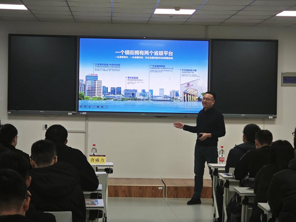宣讲会上,唐威力对桂城街道的基本情况和各方面优势进行了全面介绍,他以城市、产业、人文三个维度为框架,深入解读了桂城的定位,并重点介绍了桂城的三大特色名片——公园城市、教育强镇、人才乐园。唐威力聚焦教育领域,详细分析了桂城教育的现状,特别强调了桂城对教育人才引进的重视,鼓励同学们积极参加佛山市南海区桂城街道教育领域的招聘考试,投身教育事业,实现个人价值。