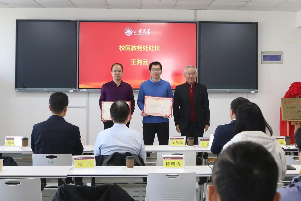 于振涛和肖忠野共同为科学计算与大数据暨“曙光”先进计算菁英班揭牌。仪式公布了精英班班主任、学业导师及行业导师名单,教务处处长王湘云为学业导师和行业导师代表颁发聘书。