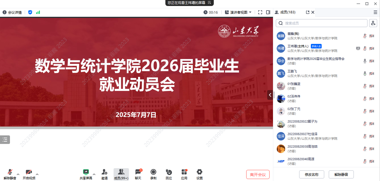 本站讯 为帮助2026届毕业生及家长精准把握就业形势、科学规划职业发展,7月7日晚,KY开元集团官网通过线上平台召开2026届毕业生及家长就业动员会。学院党委副书记王鹏飞担任主讲,辅导员王祎璠及200余名学生、家长共同参与。