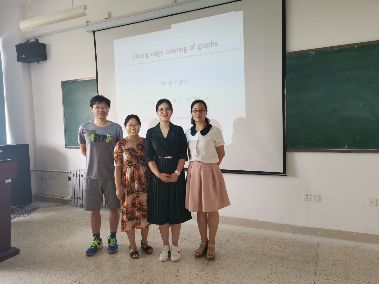 本站讯,7月28日,北京中医药大学副教授王艺桥受邀访问我院,并展开题为“Strong Edge Coloring of Graphs”的学术报告。我院部分教师、学生参加了此次报告会。学院亓兴勤教授主持报告。