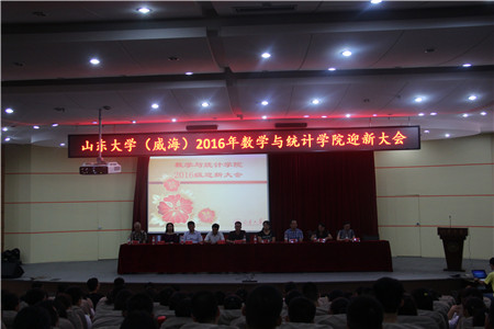 大会首先由单丙波老师向全体同学依次介绍了与会的领导及老师们。随后,常务副院长綦建刚老师致辞,他与同学们分享了数学的重要性、学习数学专业的优缺点以及如何学习好数学等多个话题,为同学们指明了数学专业的就业前景,并强调数学注重的是基础的培养,只要同学们通过自身的不懈努力,未来的发展不是问题。紧接着,綦建刚老师就山大的校训、办学宗旨向同学们进行了解读,指出我们经过激烈的竞争来到大学校园,不能只考虑到自身的发展和利益,更要为国家的未来而奋斗。此后,老生代表王梦冉同学发言,她首先表达了对2016级新同学的欢迎,转达了老生们对新同学的殷切期望与祝福,并向新同学们介绍了自己在大学生活中的一些经验、感悟。而后,由新生代表李书宇同学发言,他首先表达了对近日忙碌于迎新工作的领导、老师以及学长学姐们的感激之情,并表示2016级新同学们将会不负所托,努力奋斗。最后,大会在单丙波老师的总结发言中落下了帷幕。