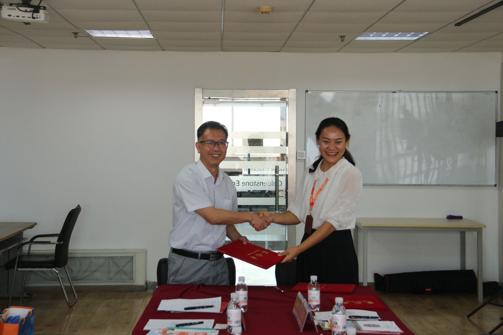 7月25日下午,綦建刚一行走访至青岛金石教育科技股份有限公司,与公司人力资源经理王炎、人力资源部王海燕等人进行了座谈交流。在座谈中,我院详细了解了金石教育的发展规模、企业文化以及公司的招聘政策、人才培养模式、员工薪酬待遇等情况。同时,双方就未来的合作方向和合作方案进行了深入交流,达成共识,并签署就业创业实践基地合作协议书。在金石教育工作的我院2015届毕业生辛举随后加入座谈,辛举表示自己的成功得益于学校和老师们的栽培,并十分乐意回访母校,在力所能及的范围内为母校贡献自己的一份力量。