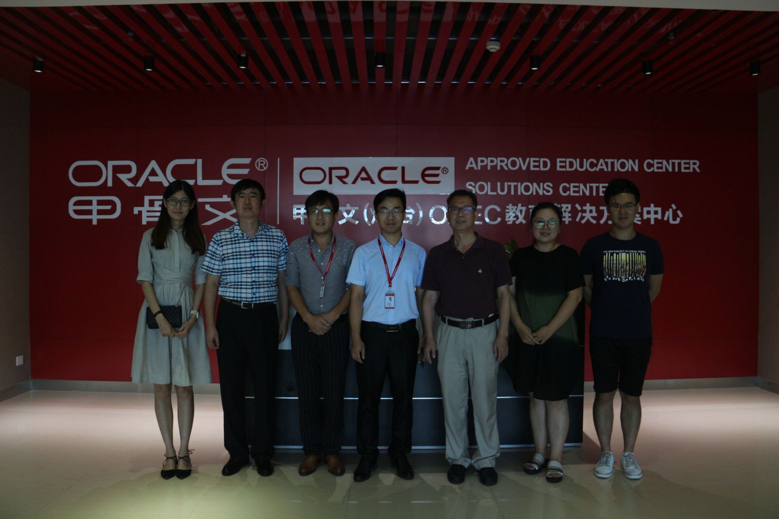 7月25日上午,綦建刚一行首先前往甲骨文(烟台)OAEC教育解决方案中心进行调研。在参观甲骨文公司展厅的过程中,项目负责人魏旭光对公司的发展历程、前沿技术和合作项目等方面进行了简要介绍。随后的洽谈中,我院走访团对甲骨文(烟台)OAEC教育解决方案中心的培训体系、课程方案、课程内容等进行了深入了解。中心教学总监王老师从数学专业学生的需求出发,在课程选择和就业技能强化方面提出了建议。最后,双方在学生实训和师资培训方面达成合作意向,并签署就业创业实践基地合作协议书。