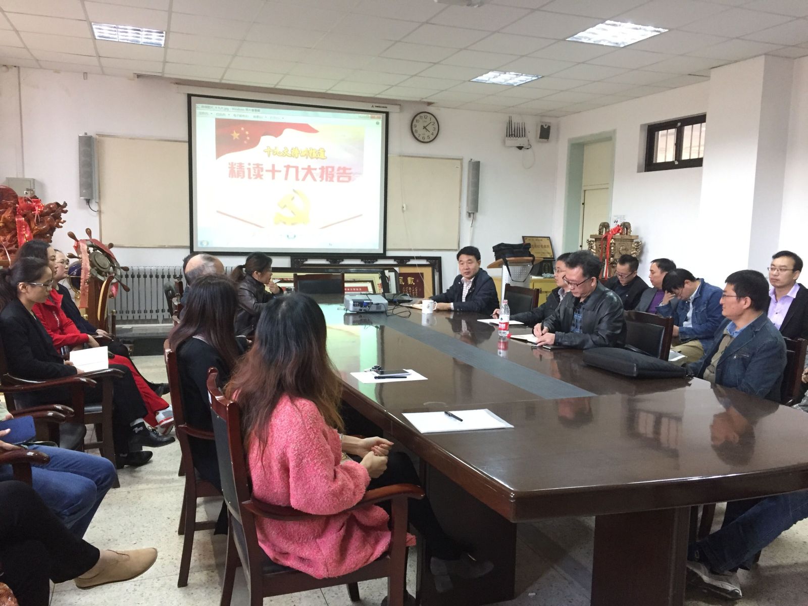 本站讯 10月19日下午,我院在图东环楼208室召开会议,集中学习党的十九大会议报告。学院无授课任务的教职工参加会议,会议由院党总支书记栗庆冬主持。