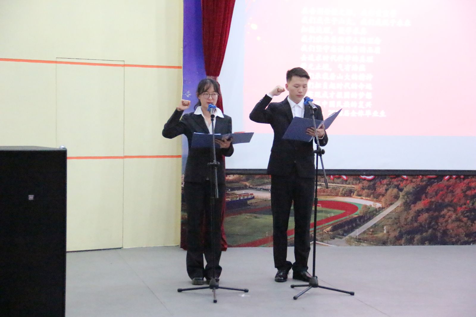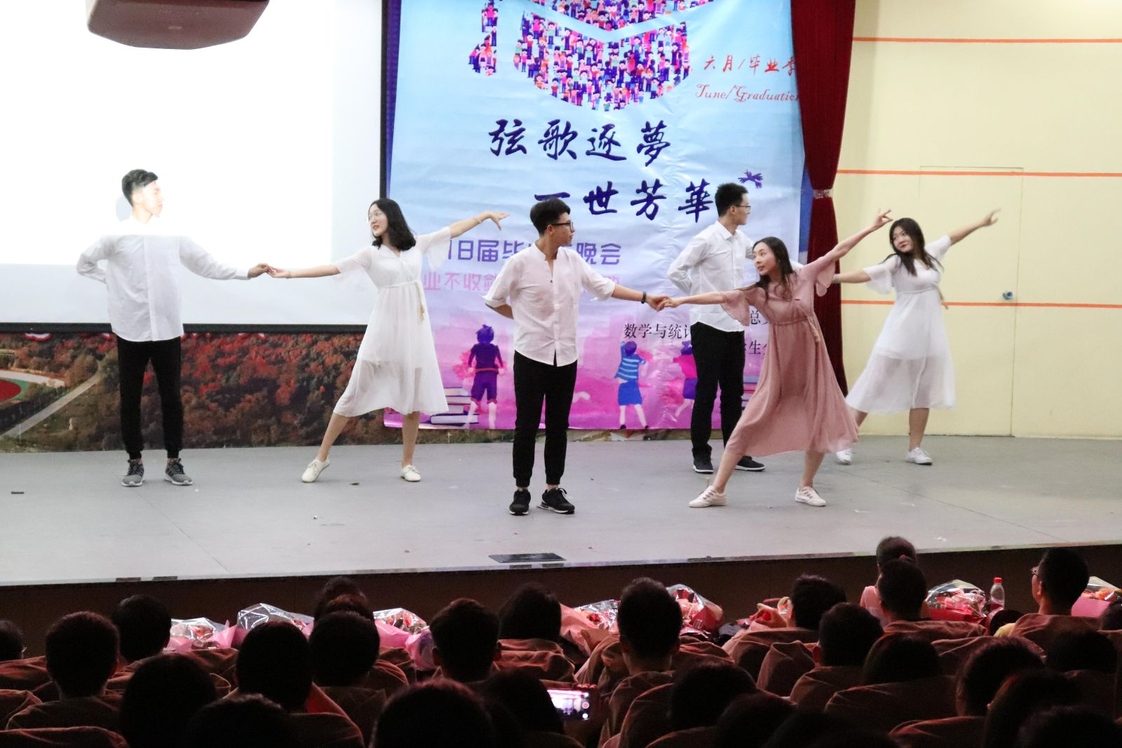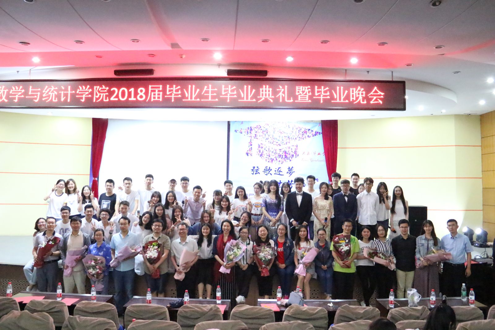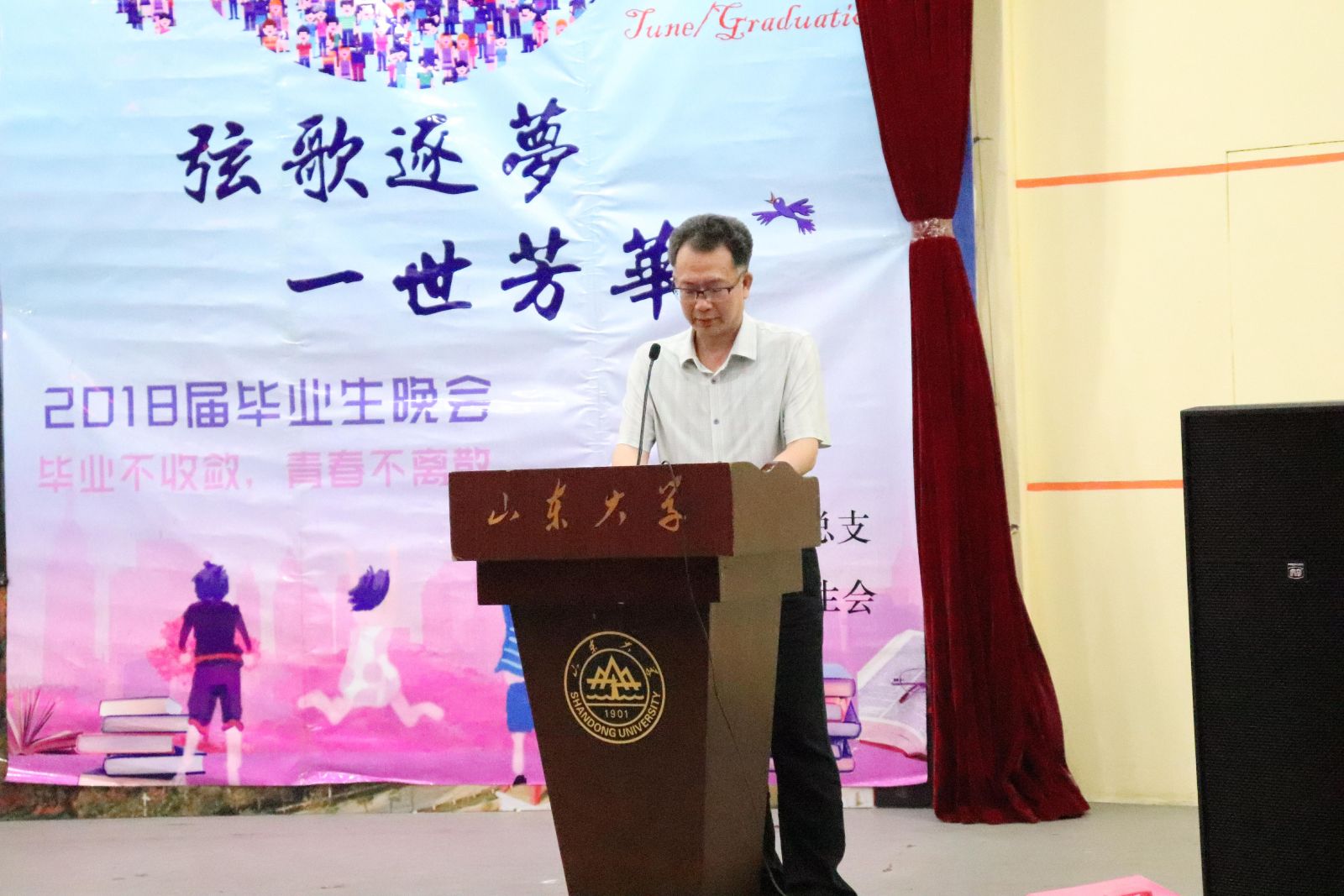 本站讯 6月9日晚,我院于玲珑学堂举办2018届毕业典礼暨“弦歌逐梦,一世芳华”毕业生晚会。学院常务副院长綦建刚、党总支副书记单丙波、学院部分老师以及各年级辅导员莅临晚会现场,2018届全体毕业生和在校生代表共聚一堂欢送毕业生。
