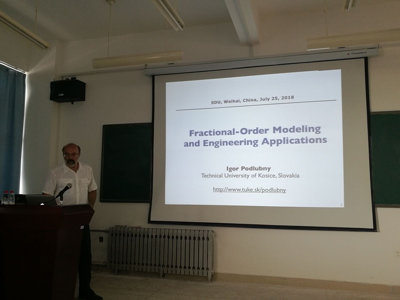 本站讯 7月21日-7月25日,斯洛伐克共和国科希策技术大学伯格学院Igor Podlubny教授应邀来我院进行学术交流,并在学院学术报告厅分别作了题为“An Overview of Fractional Order Calculus: History, Theory, Applications”、“Matrix approach to numerical fractional calculus”和“Fractional-Order Modeling and Engineering Applications”三场学术报告,学院部分师生聆听了报告。