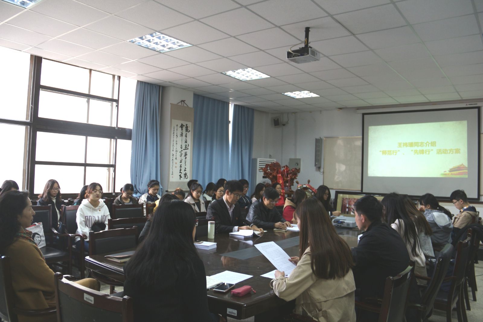 本站讯 10月18日上午,我院于图东环楼208会议室举行“师长领航”党员实践活动启动会,学院党委书记单丙波、党委副书记王鹏飞和党委委员出席会议,2015级全体党员和2018级班委代表参加了会议。会议由院党委副书记王鹏飞主持。
