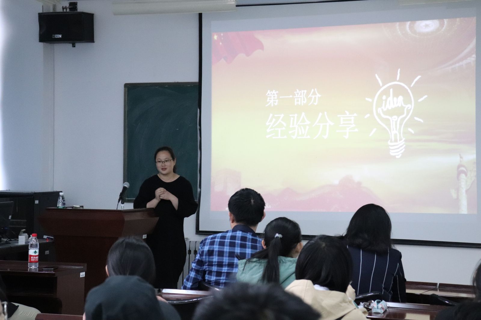 本站讯 5月4日下午,我院于图东环楼304举办了“Youth Talk” 青年校友分享会暨纪念“五四运动”100周年特别活动。本次活动邀请学院优秀青年校友胡琴琴和陈潇担任主讲嘉宾,学院党委副书记王鹏飞,辅导员孙磊、赵德豪出席活动,活动由董珂主持,学院学生代表参与了本次活动。