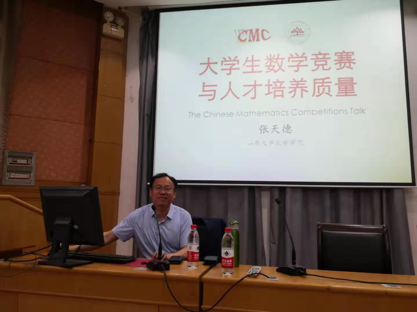 张教授的报告从数学竞赛山东赛区组织工作、山东赛区竞赛成绩、数学教学改革收获、创新人才培养成果和数学竞赛试题分析五个方面展开。他用幽默的语言和生动的实例阐释了对数学竞赛的认识,明确了数学竞赛基本流程和赛制的公平、公正性。同时,张教授给师生分享了很多课程资源和途径,增强了老师参与数学竞赛工作的信心,激发了学生学习数学参与竞赛的热情,为今后的数学学习和竞赛打下了坚实的基础。讲座结束后,张教授与参会的师生进行了互动交流。
