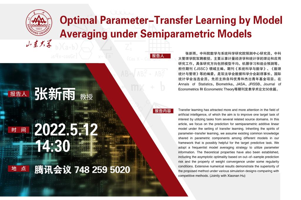 学术报告:Optimal Parameter-Transfer Learning by Model Averaging under Semiparametric Models