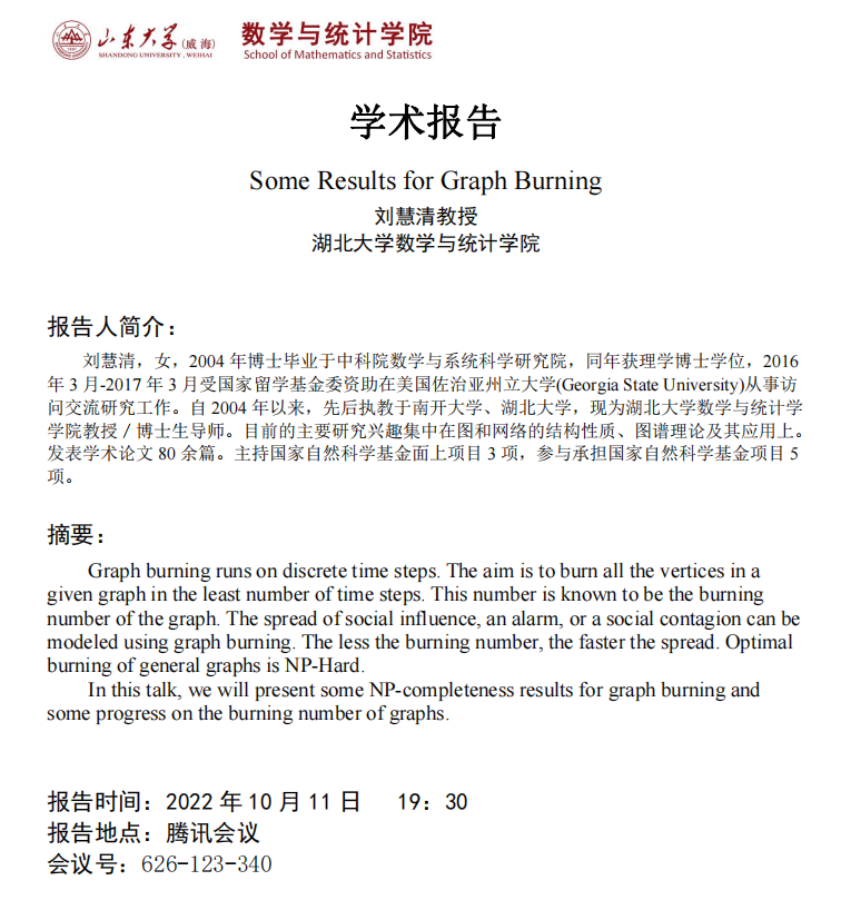 学术报告:Some Results for Graph Burning