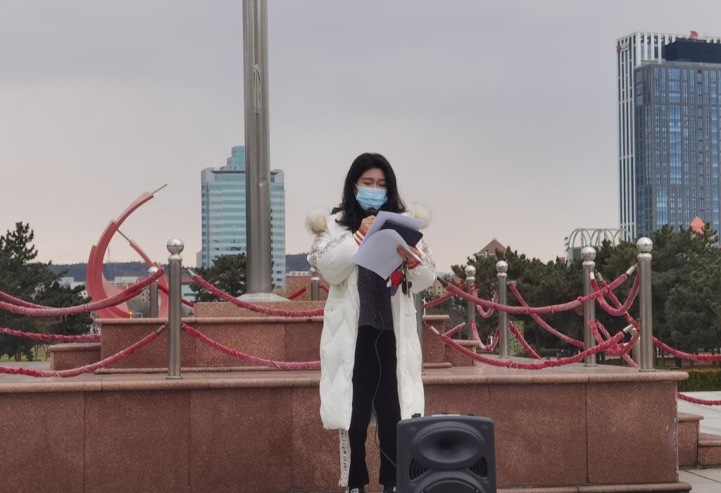 本站讯 2020年11月30日上午七时,我院在图书馆前广场举办“弘扬抗疫精神 助力脱贫攻坚 展现青春担当”升国旗主题团日活动。辅导员古钰、20级全体学生、18级部分团支部参加本次活动。本次活动由曹祎芯主持。