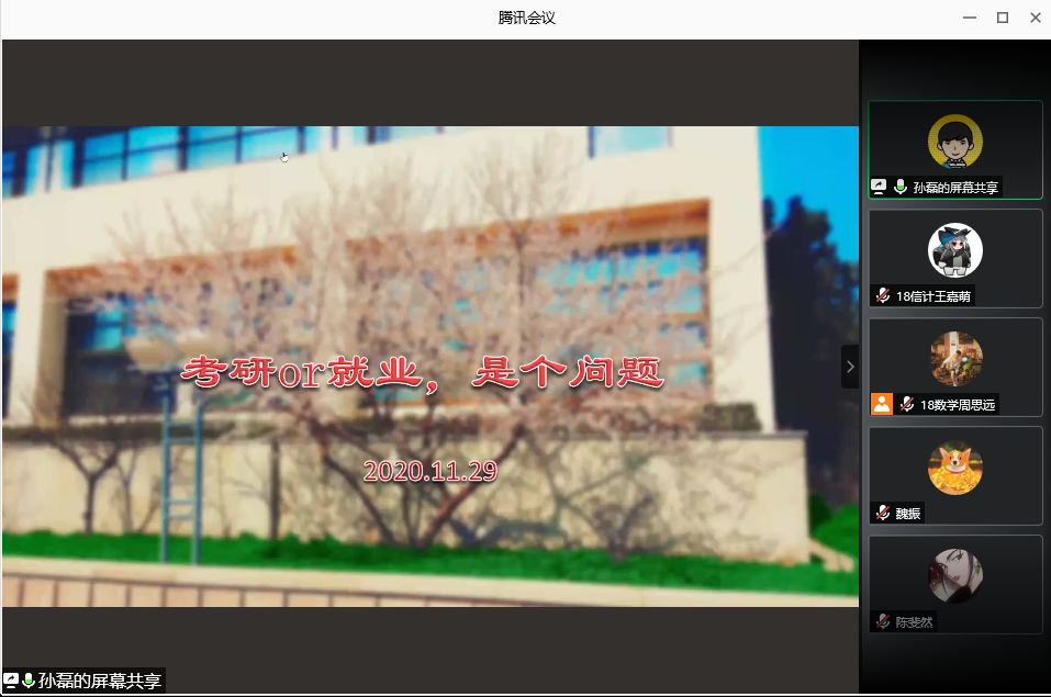 本站讯 为帮助同学们明确未来发展方向,树立规划意识,11月29日上午,我院于线上举办了“走进心灵——考研or就业,是个问题”心理讲座,学院团委书记孙磊担任主讲,部分本科生聆听了讲座。