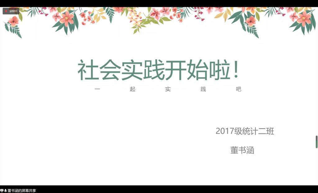 会议开始,实践服务部秦美凤介绍了此次暑期社会实践活动的具体情况及要求并强调了此次活动开展需要注意的安全问题。辅导员王紫山鼓励参加此次社会实践的人员充分利用线上资源进行活动的开展,在实践主题的选择时可考虑与疫情和脱贫攻坚相关的主题,与实际相联系,尽可能做到思维的发散。在线上开展暑期社会实践活动时,后期文案的写作、图片的编辑及资料的整理应当引起高度的重视,运用数学建模等专业方法时,尽可能在正文中简述大致思路,而将运算步骤等细节添加在附件里,使活动的思路与方法更加浅显易懂。其次,2019暑期社会实践优秀团队代表董书涵和李佳琪进行了暑期社会实践经验交流。团队代表董书涵连续两年带队参加社会实践活动,在会议中分享了社会实践课题选择的策略,要有深度、有想法,关注家乡的政策,结合实事,从细节出发,并在论文的撰写方面做出了简要的介绍。优秀团队代表李佳琪鼓励团队多查阅往期优秀团队资料并强调了社会实践的意义,能够拓宽自己的知识面,讲述了其参加暑期社会社会实践的亲身感受,并希望团队能结合兴趣爱好与社会热点,激发自己的热情。最后,在实践服务部刘志敏的结束语下,此次暑期社会实践线上动员大会圆满结束。