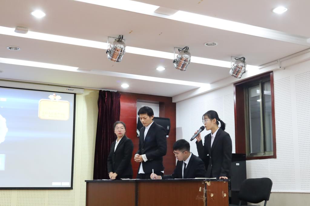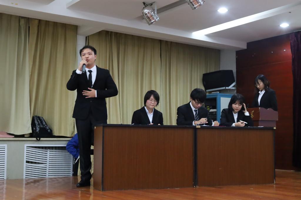 本站讯  11月24日晚19:00,望言辩论社2019辩论表演赛与经验分享会于文泰苑518室举行。校辩论队队长陈超、商学院雁鸣辩论队队长杨峻和翻译学院谷语辩论队队长丛铭洋担任比赛评委,校辩论队副队长梁越和海洋学院山海辩论队队长李奇担任指导嘉宾,社团内部19级会员自愿组队参加比赛。