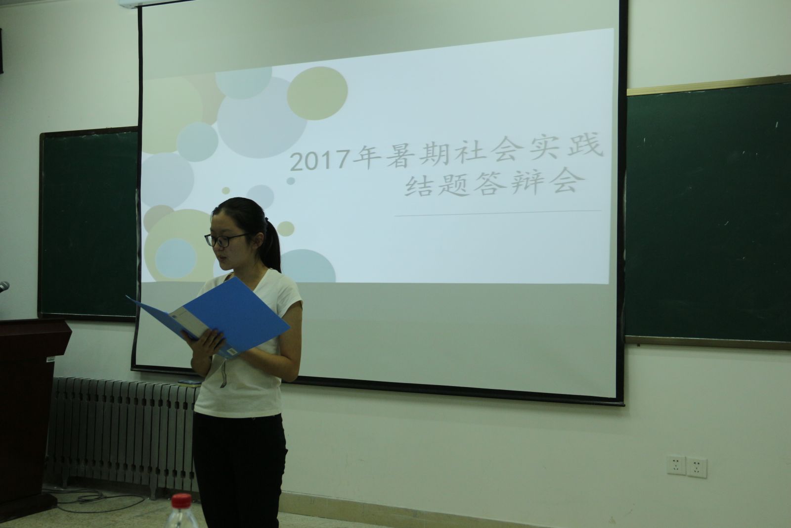 本站讯 2017年9月20日,我院于图东环楼304举办了2016-2017学年暑期社会实践结题答辩会。学院党总支副书记单丙波,团总支书记陈昕,辅导员孙磊、赵德豪、王祎璠作为评委出席本次答辩会。经过初审,共12支团队参加本次答辩。