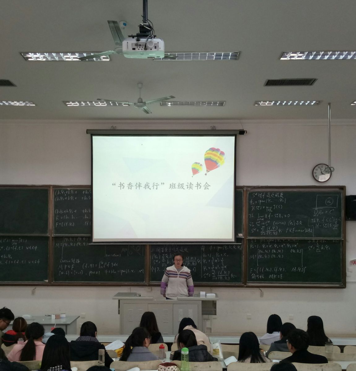 本站讯 4月17日下午,2014级数学与应用数学班于图东教学楼208室举办 “书香伴我行”班级读书会。本次读书会由学习委员李皓瑾同学主持,2014级数学与应用数学班全体同学参加了此次读书会。