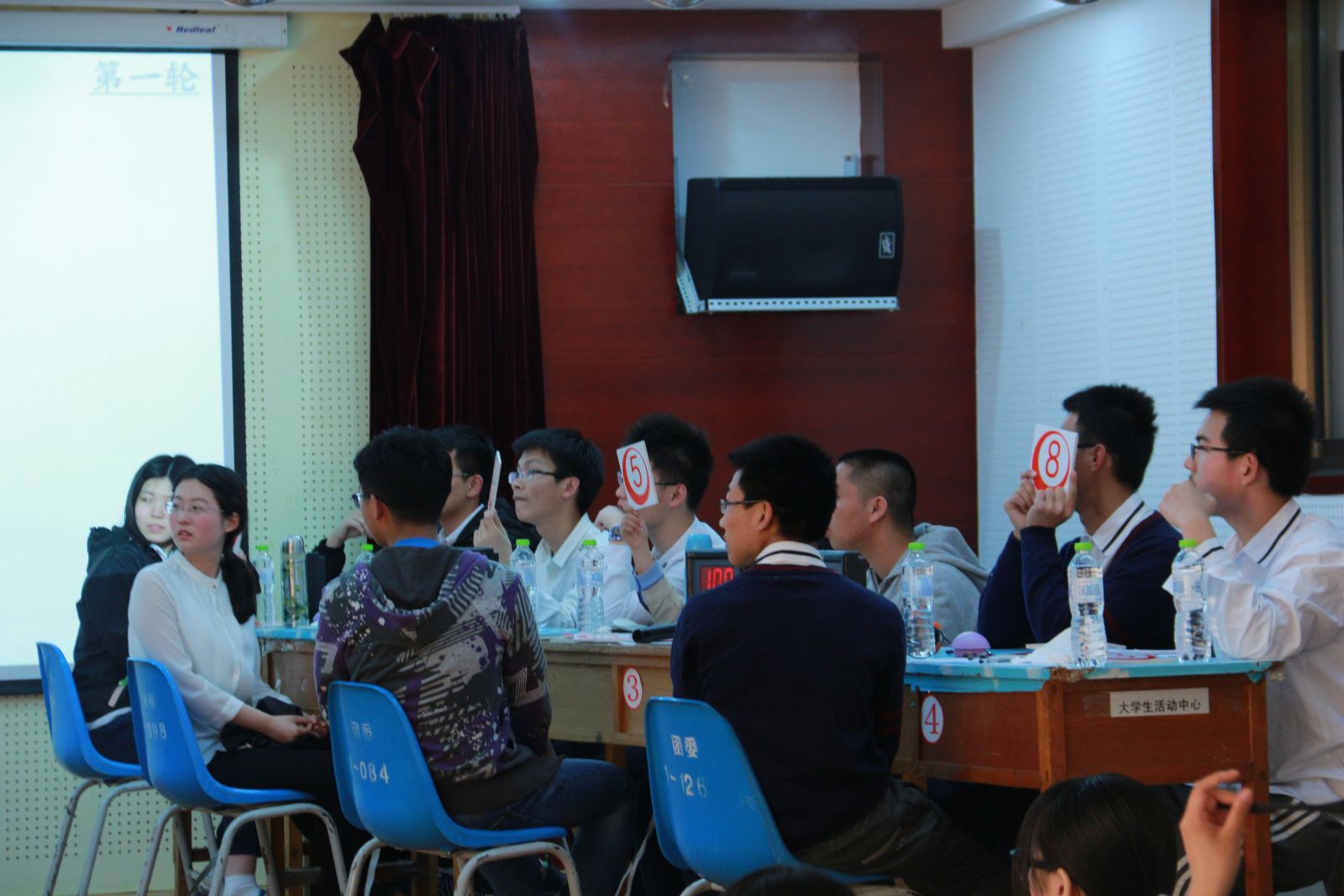本次数学趣味知识竞赛分为初赛和决赛两个阶段。经历了4月15日的初赛后,8支代表队最终进入决赛。首先,主办方在大屏幕上放映出精心准备的视频,介绍了本次活动,使现场气氛热烈起来。随后,主持人介绍了本场辩论赛的评委和参赛队伍。之后进入第一环节,各支参赛队伍依次进行自我介绍,并表达了一起领略数学之美的美好祝愿。紧接着,主办方组织参赛队伍依次进行了谁是卧底,你画我猜,大师小传,攻其不备的比赛,比赛形式多种多样,内容精彩纷呈,趣味十足。在比赛过程中,选手们都凝神静思,在极短的时间内做出答案,台下掌声和惊叹声不断,大家都为选手们的智慧所折服。最终通过四个环节的比赛,哈工大代表队以390分的好成绩,获得一等奖,15统二和16数金代表队取得二等奖,15应数,15数金和16统一代表队获得三等奖,16应数和14应数获得优胜奖。随后,评委为在场各位选手颁发奖状 。至此,2017年第十一届数学趣味知识竞赛在一片掌声之中落下帷幕。