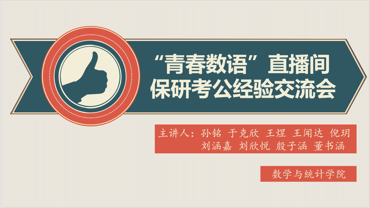 本次“青春数语”直播间之保研考公经验交流会,旨在增强学生的职业生涯规划意识,明确各专业的保研方向和前景,解答有关保研考公各层面的困惑与误区,“路漫漫其修远兮,吾将上下而求索”,我院优秀学子的宝贵经验将激励同学们不断登攀,实现更高的人生追求。