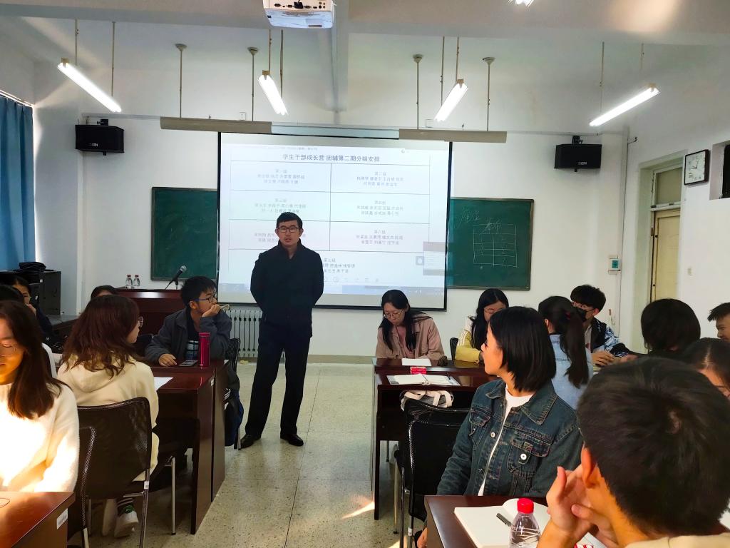 本站讯  11月3日上午9:00,我院于图东环楼304室举办学生干部成长营第二期团队辅导活动。辅导员孙磊出席并主持本次活动,学团部门全体学生干部、2019级全体班委参加了本次活动。