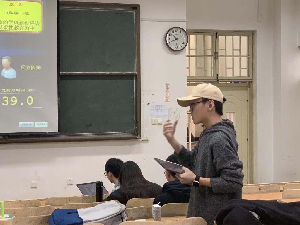 本站讯  11月2日上午,我院于图东教学楼122室举办了数学嘉年华之“数韵风采,谁语争锋”新生辩论赛。本次辩论赛共分两场,第一场由正方2018级统计学二班对阵反方2019级数学类一班,第二场由正方2019级数学类四班对阵反方2018级数学数科联队。