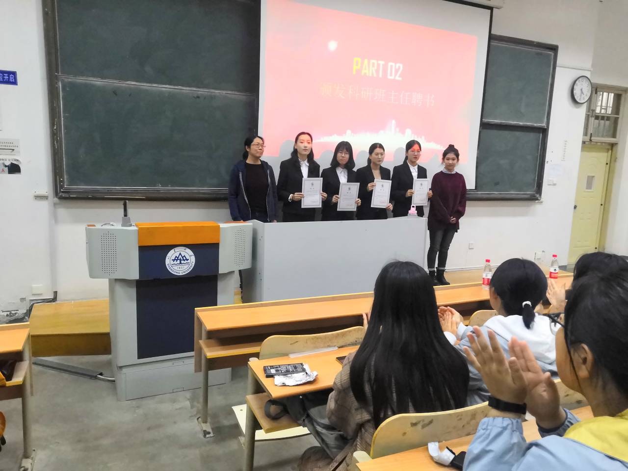 本站讯  10月31日下午,我院于图东教学楼122教室举办“携手朋辈辅导,传承创新精神”第十三届科研班主任受聘仪式,我院数学与应用数学系主任孙庆峰和辅导员古钰作为嘉宾出席活动,第十三届科研班主任代表,2019级部分新生参加了本次受聘仪式。
