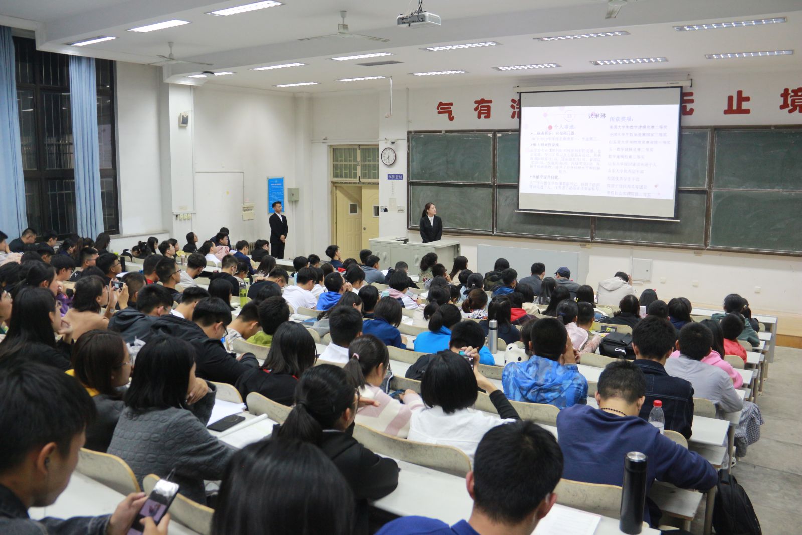 本站讯 10月8日晚,我院于图东教学楼105室举办2019年国家奖学金答辩会。学院党委副书记王鹏飞、全体辅导员作为评审出席会议。二十一位答辩人,以及2019级全体新生参加了本次答辩会。