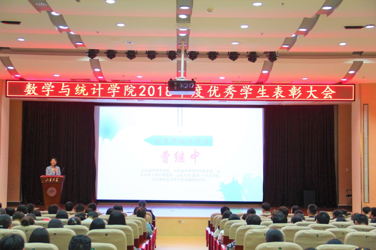 本站讯 6月6日下午,我院于闻天楼东报告厅举办“传承时代之光,奏响青春乐章”2018年度优秀学子表彰大会。学院党委书记单丙波,党委副书记王鹏飞,辅导员孙磊、赵德豪出席会议,2017、2018级全体同学参加。