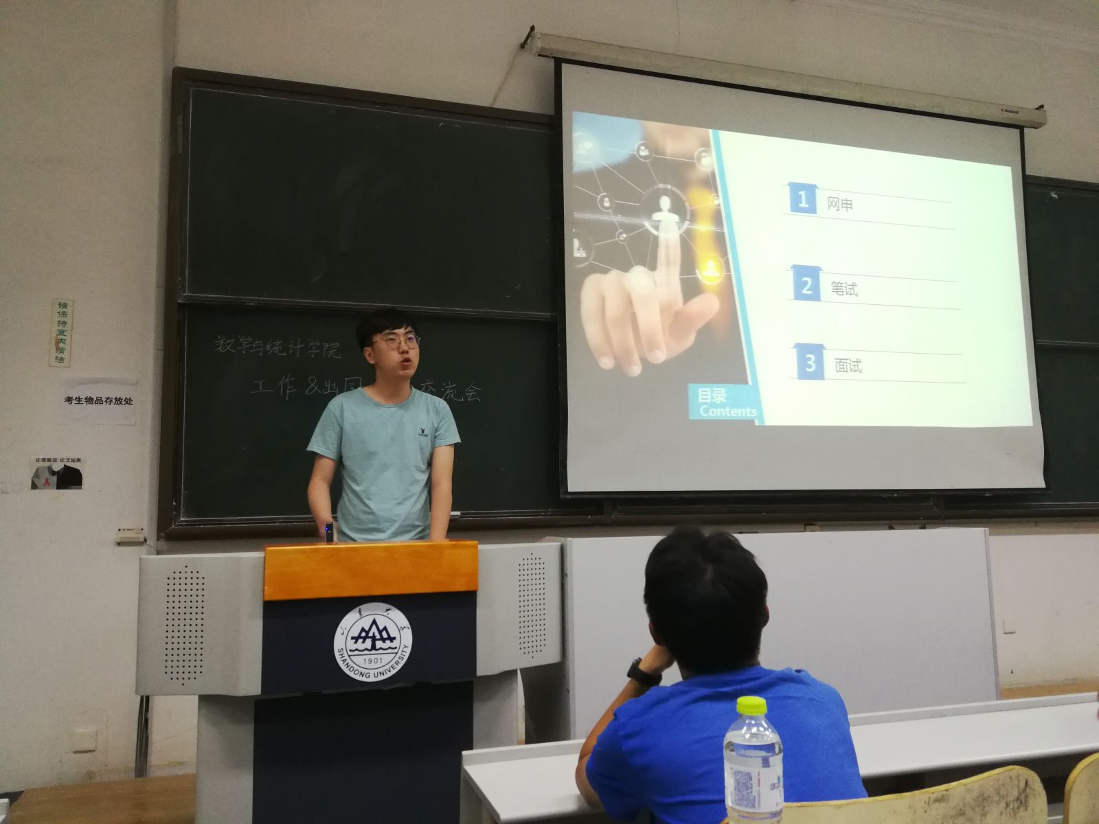 本站讯 2019年5月24日晚19时,我院于图东教学楼126室举办就业与出国经验交流会。本次交流会的主讲嘉宾有来自2015级的孙涵、刑偌菲、侯泽辰、闫欣宇、闫艺和龙晓文。学院对就业与出国感兴趣的同学参加,此次交流会由周冠华主持。
