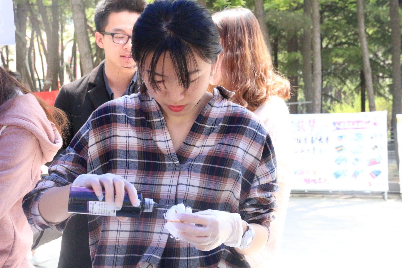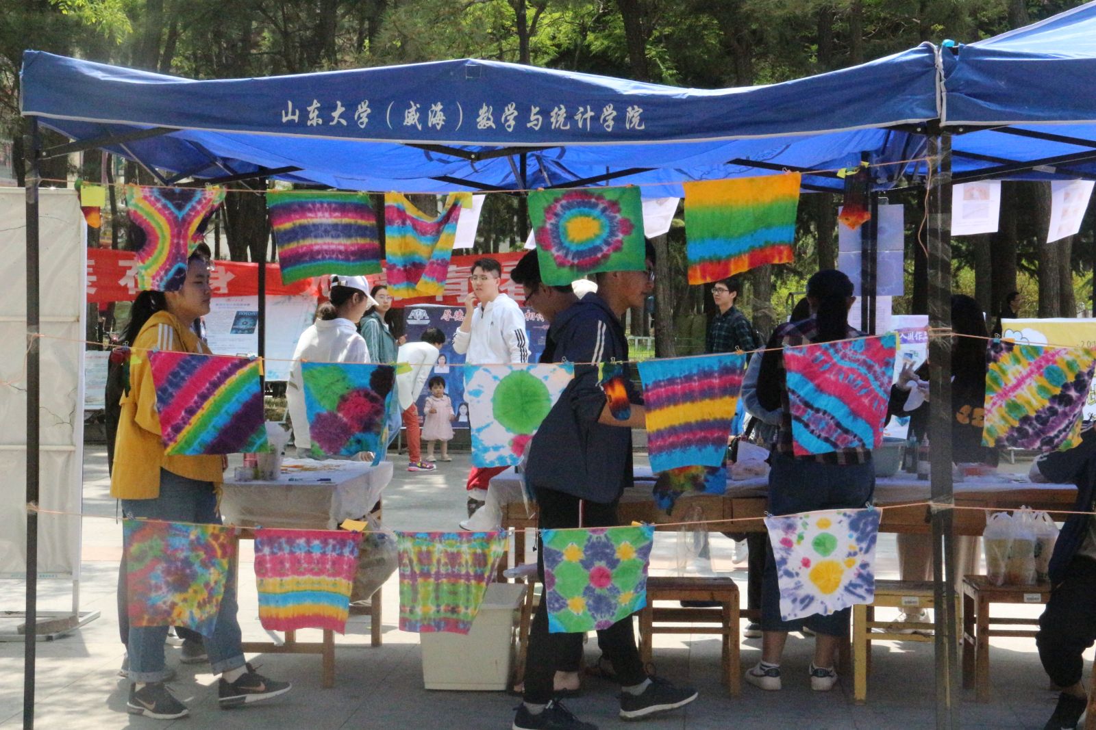 本站讯 5月11日、5月12日,我院于五四广场举办“魅力数韵,精彩芳华”数学嘉年华系列活动之“方圆绮错,数韵纵横 ”手帕扎染活动。活动的参与人数众多,现场气氛高涨。