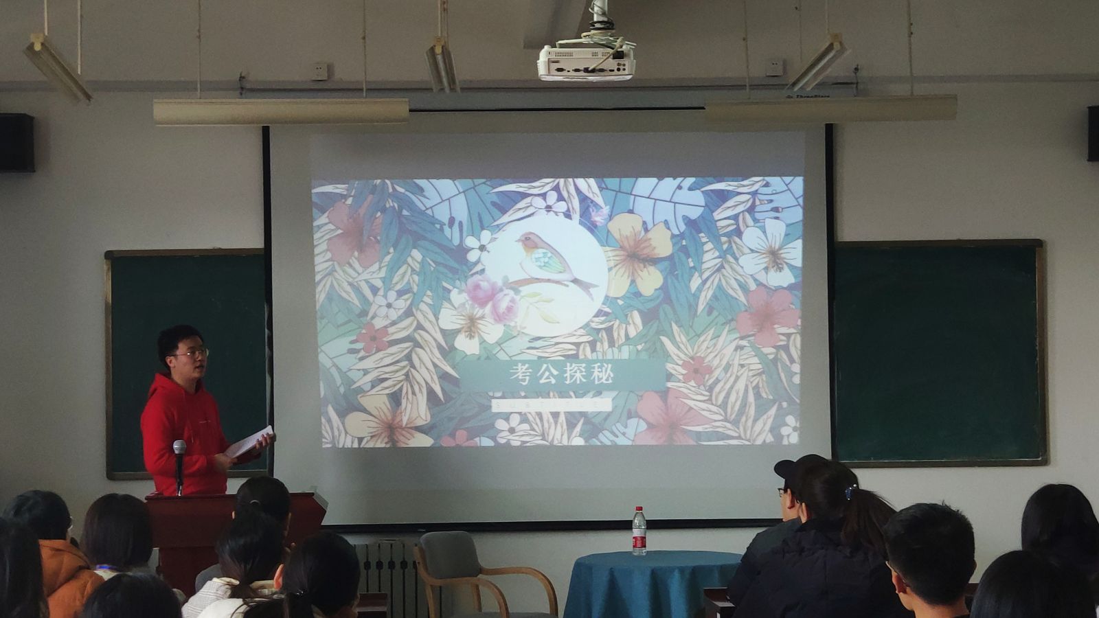 “励志周末”讲坛第五期面向我院各级同学,给同学们提供了进一步了解报考公务员有关信息的平台,有助于同学树立学习目标,明确人生方向,进一步思考未来发展。