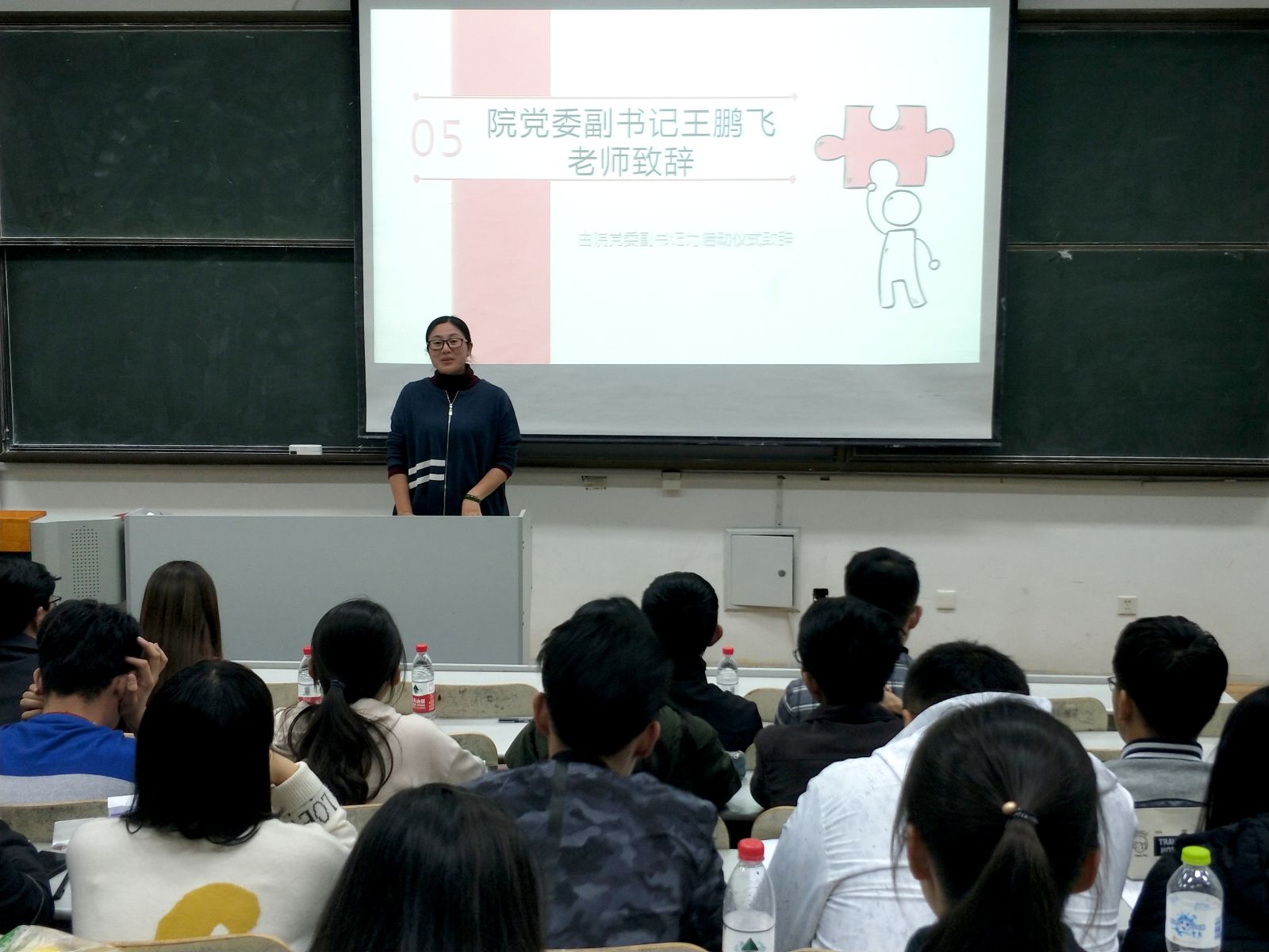 本站讯 10月29日晚,我院2018年度“学生干部成长营”启动仪式在图东教学楼126室举行。学院党委副书记王鹏飞、辅导员孙磊、赵德豪、王祎璠、王紫山出席了仪式,学院学生会全体成员、2017、2018级全体班委参加了本次仪式。