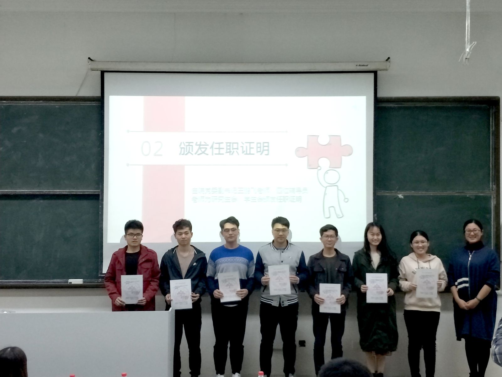 启动仪式上,首先由学生会团学事务部部长张琳琳从理论学习、经验交流、素质拓展、实践提升四个方面对本学年“学生干部成长营”进行了具体的工作安排,并就成长营纪律要求、考核办法进行了详细介绍。随后,2017年度“学生干部成长营”优秀营员代表张弛和2018年度“学生干部成长营”营员代表关泺萌相继发言。张弛分享了自己的学习心得和经验,她谈到通过成长营的学习,不但懂得了如何经营好一个班级,对工作的内容和意义也有了更深刻的认识。她希望营员能珍惜学院搭建的平台,全心投入,建设一个既有爱又有能力的班级。关泺萌谈到了自己的困惑与期待,承诺将严格遵守营规,认真学习、积极实践、及时总结,要争做同学们的先锋。为了彰显学生干部的使命感和仪式感,本次启动仪式,王鹏飞和四位辅导员还郑重为研究生会和学生会主要学生干部颁发了任职证明。