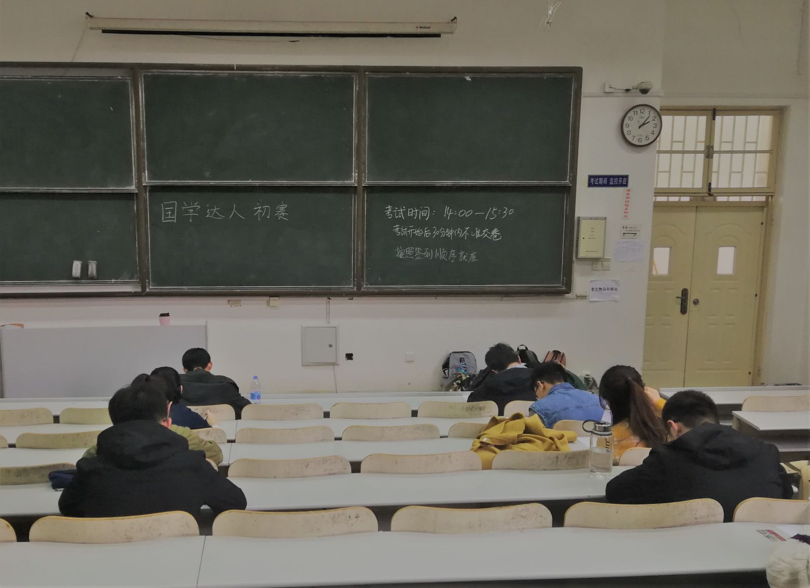 本次比赛旨在通过笔试考察参赛同学的国学知识储备与素养,向全院同学宣传国学文化,并选拔出最优秀的选手代表学院参加 “国学达人”决赛。全体参赛选手签到并落座后,监考员向到场选手讲解了比赛的进行形式与评选方法,强调了本次比赛的考查形式并严明考试纪律,要求参赛选手认真审题,规范答卷。比赛过程中,参赛选手均以认真的态度仔细答题,比赛现场秩序井然,展现了良好的考试作风。所有参赛选手均在规定的考试时间之内上交答卷并有序离场。赛后,答卷将由相关人员收回并批改,取成绩最为优异的三名同学组成院队,参与校级决赛。